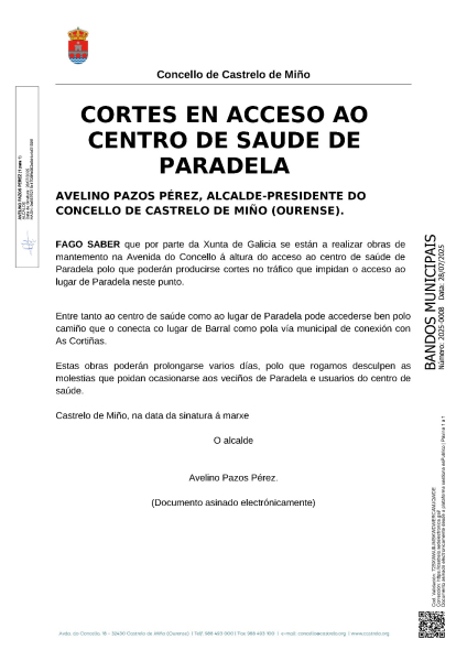 Avda. do Concello, 18 - 32430 Castrelo de Miño (Ourense)